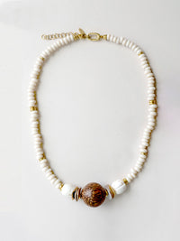 This Terracota necklace is made with honey brown java glass beads, offering a beautiful neutral color. It also features extra links, allowing for a wearable length of up to 22". Perfect for the spring and summer seasons.