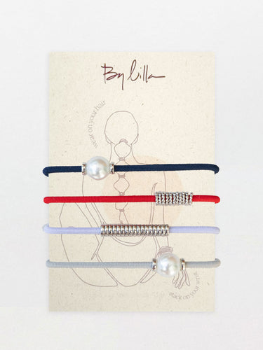 This new category was designed to include a mix of the embellishments from our best selling pack of two that you all love so much. Each bracelet doubles as a sophisticated hair tie, offering versatility for your everyday looks.