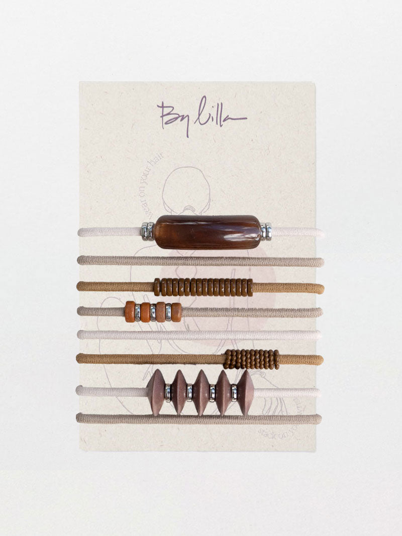Wear them stacked for a warm, textural statement or solo for a subtle, natural finish. Each piece doubles as a functional hair tie, bringing that signature By Lilla blend of ease, versatility, and everyday chic.