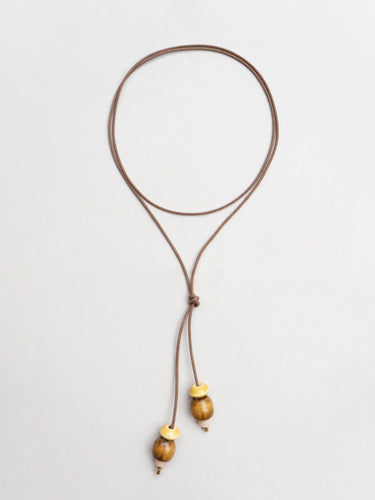 Designed with a sleek adjustable cord and finished with double drop-bead accents in glossy black, soft neutrals, and sunlit yellow, it brings a fresh, modern twist to the classic lariat silhouette. Lightweight and easy to style, it adds a subtle pop of color and movement to any lookp erfect for dressing up a simple tee or layering with your everyday favorites.