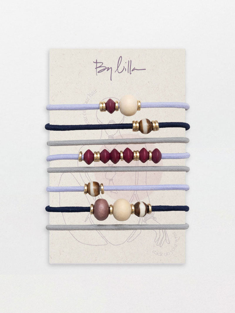 I keep a hair tie on my wrist at all times. So I was excited to find these, that look like fashionable bracelets. They're so cute and I've even gotten compliments from people that had no idea that my bracelet doubled as a hair tie! I will be buying more.