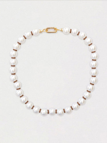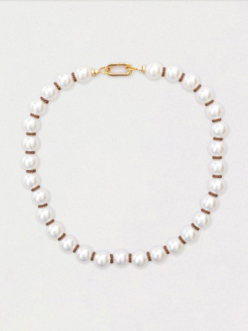 The AUDREY necklace is timeless, feminine, and effortlessly chic. Hand-strung with freshwater pearls separated by enamel discs, it’s finished with a gold plated clasp that adds just the right touch. Perfect for layering or wearing solo.