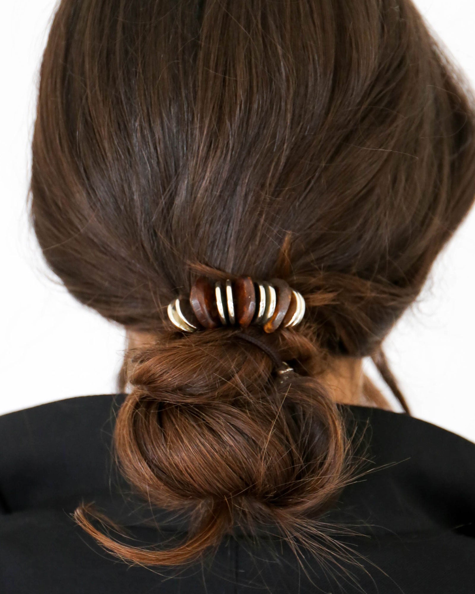 Designed to transition seamlessly from a standout bracelet to a functional hair tie, perfect worn solo or layered with other pieces from the capsule collection.
