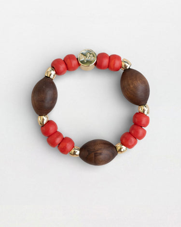 The Saffron capsule is hand-strung with rich wooden beads and vibrant red glass beads. Add it to any outfit for a pop of color and a elevated look.